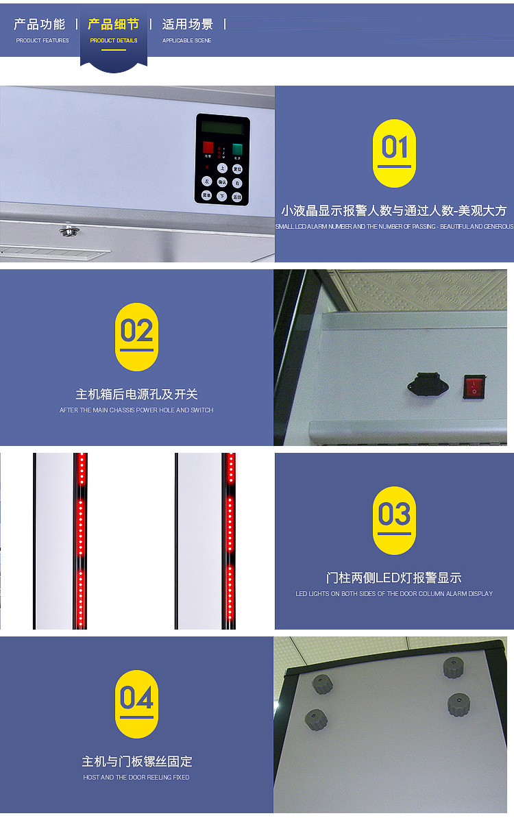 (6)、聲光報警:警報器、兩側門柱區(qū)位指示燈,可同步聲光報警提示。