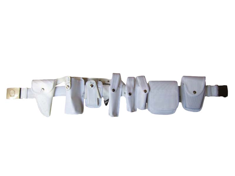 • 單警裝備--三代牛津白色 規格尺寸:主(橫)腰帶規格 1100mm-1400mm配套裝具:①手銬套②對講機套③強光手電套④警用工作包⑤警用水壺套⑥警棍套⑦手槍套⑧催淚噴射器套⑨斜跨帶注
