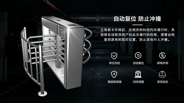1、采用獨(dú)特的人工轉(zhuǎn)動(dòng)閘桿與自動(dòng)復(fù)位,自動(dòng)鎖定及解鎖機(jī)構(gòu)相結(jié)合的傳動(dòng)系統(tǒng),使得十字轉(zhuǎn)門的運(yùn)行更加安全,可靠,便利;