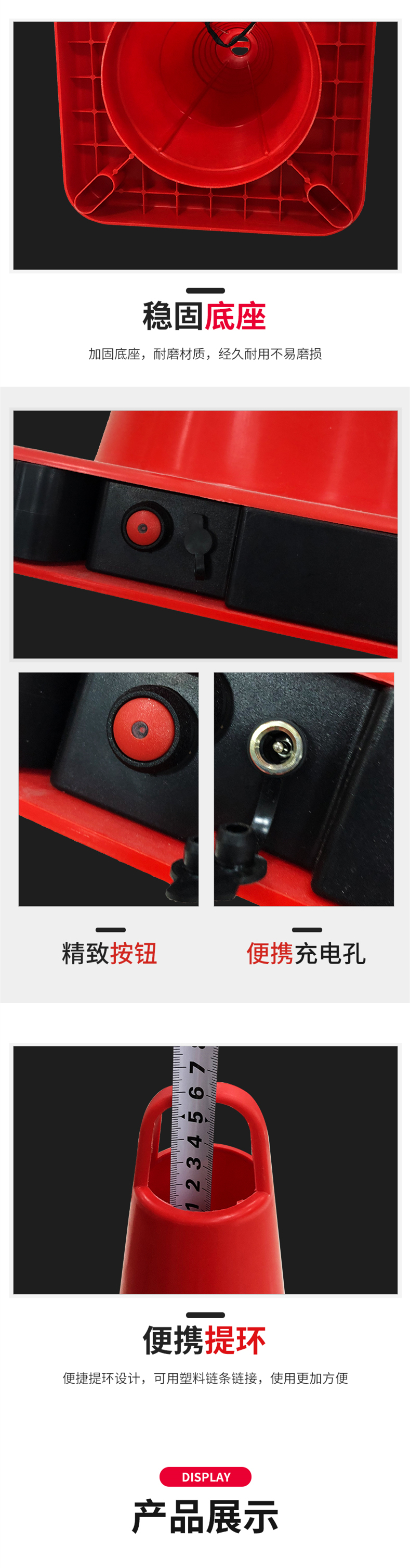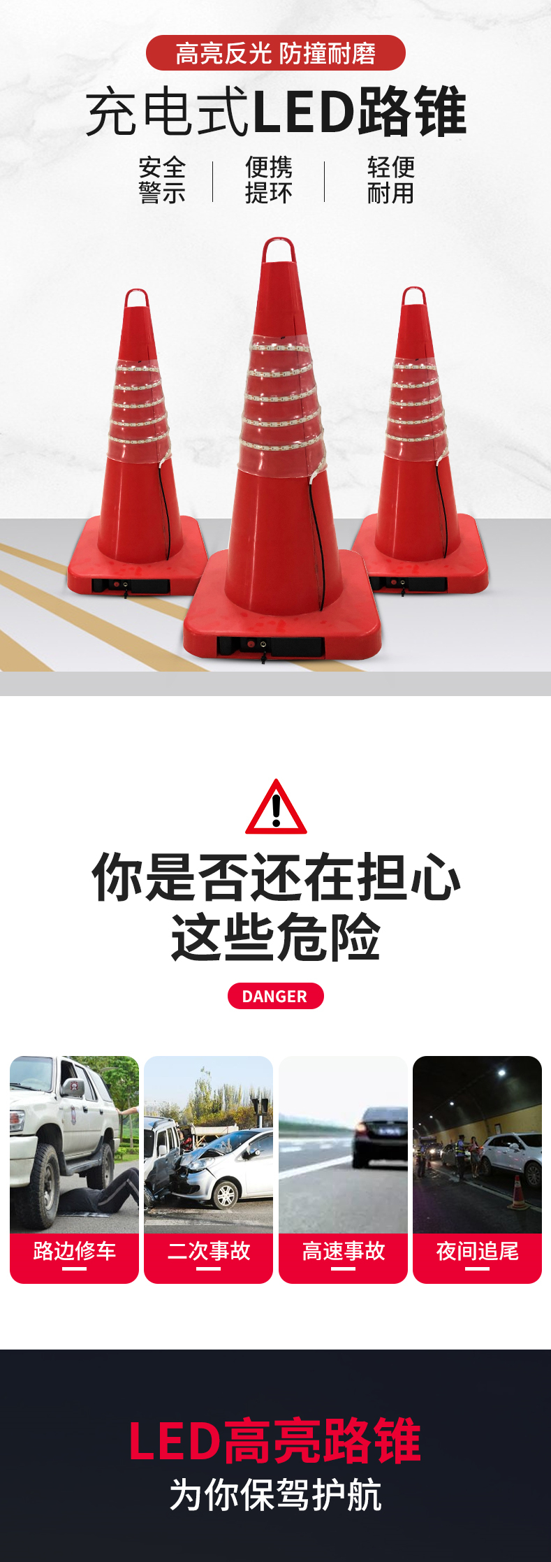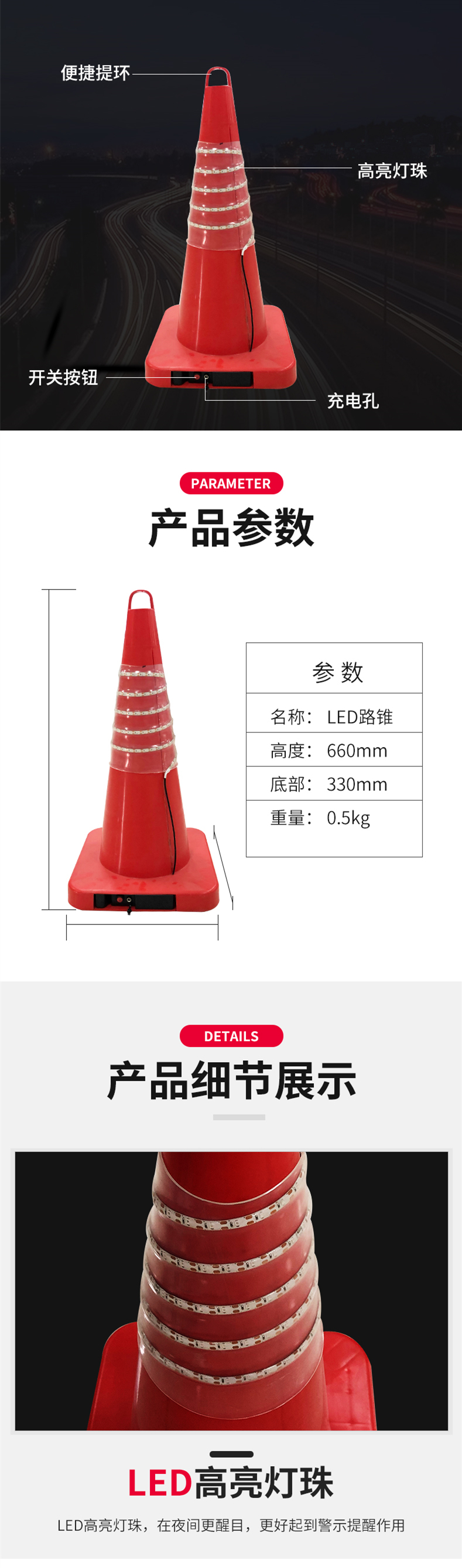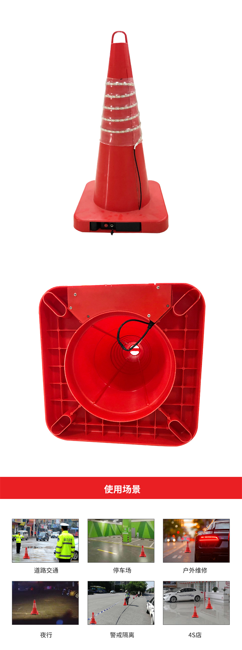 KMS-T2 LED發光路錐主要應用于夜間及低能見度惡劣天氣狀況下交通安全預警,防范交通事故發生。可廣泛應用于高速公路救援、養護、施工、危險路段預警、應急分流、高速交警、高速路政、市政養護施工、城市應急管理等部門和領域。外形美觀大方,結構設計簡約,便于維護操作;錐體材料耐老化,抗腐蝕,環保無味;可拆卸式充電鋰電池盒續航時間長,LED警示距離遠、雙色可調節;整體抗風性能好;方便儲運及快速布防收納。