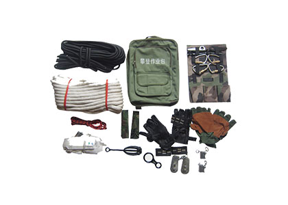 主要配置:主繩、輔繩、安全帶、頭燈、手式上升器、手套、8字環(huán)、主鎖、胸式上升器、下降保護(hù)器、長扁帶、短扁帶、繩索保護(hù)套、攀登包。