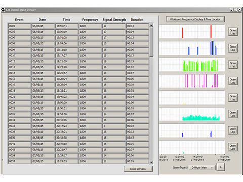 事件日志功能可記錄多達4000條事件的時間/日期,所監測頻帶,持續時間和信號強度。日志可在屏幕上查看,或存儲在U盤中用于在電腦上存儲/查看。
