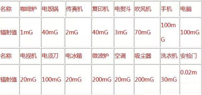 任何電子產(chǎn)品都有一定的電磁輻射。我們的周圍也存在著非常多的電磁輻射。比如電臺(tái),電視臺(tái),手機(jī)塔,高壓線,電腦,電視,微波爐,電磁爐,手機(jī)等等。上表不難看出,和其他的電子設(shè)備一樣,安檢門(mén)在使用時(shí)也會(huì)產(chǎn)生輻射,但是相對(duì)這些電子產(chǎn)品來(lái)說(shuō),安檢門(mén)的電磁輻射微乎其微。