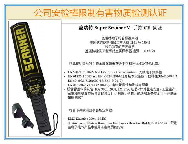 六、公司使用手持金屬探測(cè)器物質(zhì)檢測(cè)認(rèn)證: